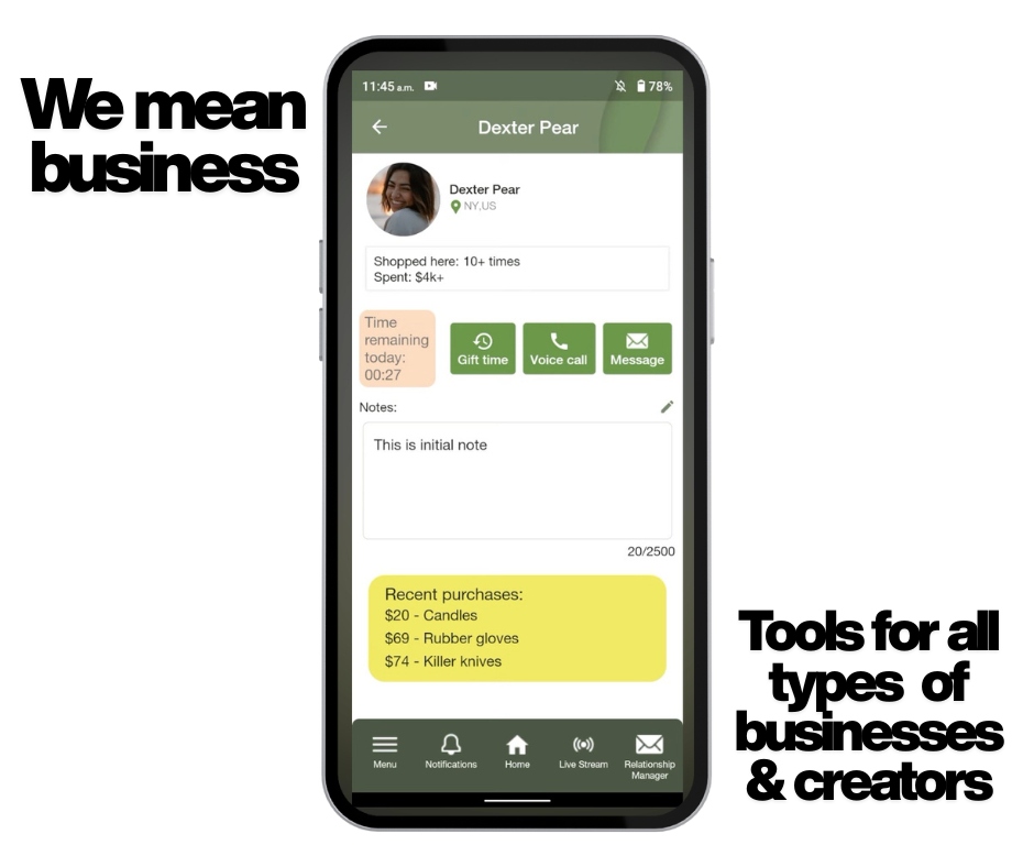 Worried about time limits? Don’t be. Creators and business owners while inside their business spaces (in the personal app) or while using our business app, won’t have a system timer ticking! Actually, business owners and creators can see their patrons’ daily time remaining in the system and even gift time to them!